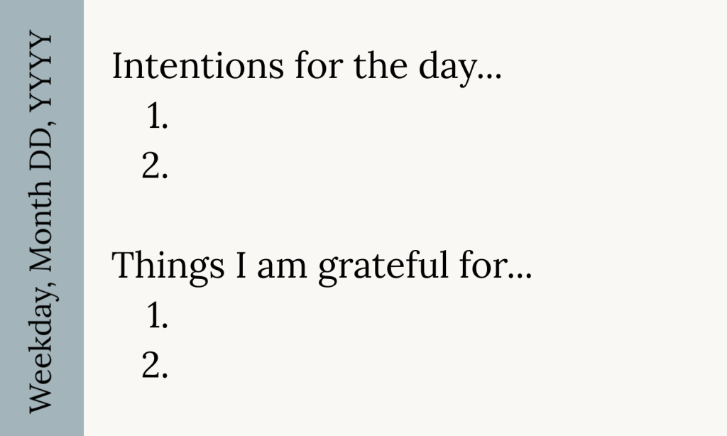 - Set the intention for the day: this could work as the ‘notecard method’ before work.