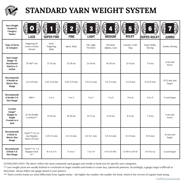 Do you want to know what confuses me the most about fiber crafts? Yarn terminology & weights! It feels like there are 100 different ways to say the same thing. Below I am going to try to simplify the varied ways to label yarn, determine weight, and the hooks/needles that correspond with each weight.